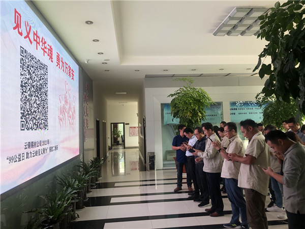 “99公益日”活動啟動后,云錫控股公司第一時間通過騰訊公益平臺生成“一起捐”企業捐贈二維碼,向全司發起捐贈倡議,以線上線下相結合的方式進行廣泛宣傳。線上利用公司內網、微信和抖音公眾號等載體,每天推送活動倡議;線下在職工較為集中的公共區域懸掛、張貼或滾動播放宣傳標語和宣傳片,有的基層單位組織開展捐贈簽名活動,有的基層班組組織職工集中收看《獻愛心助力見義勇為》《生命線》《時間》等視頻,有的志愿者走上街頭發放宣傳倡議書,有的黨員在“雙報到雙服務雙報告”工作積極參與社區組織的宣傳活動……自上而下、從內向外營造了“弘揚見義勇為精神、崇尚見義勇為道德、敬重見義勇為英雄、關愛見義勇為家庭、支持見義勇為事業”的濃厚氛圍。