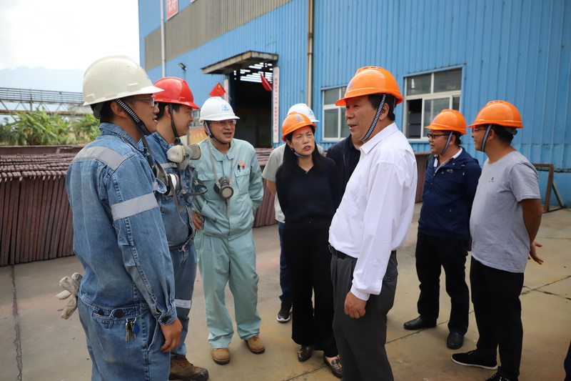 在銅業(yè)分公司,張濤首先查看了12.5萬噸/年陰極銅升級改造項目施工現(xiàn)場,詢問了項目建設進度等方面的情況。到電解車間陰極剝片機組控制室、電解精煉槽面兩個重點工作崗位,對值班值守情況進行了檢查,要求大家一定要安排好節(jié)日期間的值班值守,在崗期間要履職盡責,加強巡查,抓好安全生產,確保節(jié)日期間安全風險管控和各項應急準備到位。嚴格把控銅電解精煉各項生產要素,確保節(jié)日期間銅業(yè)分公司陰極銅產品產量達標、質量合格。隨后,在熔煉車間主控室,張濤與在崗員工親切握手,向他們致以節(jié)日的問候。