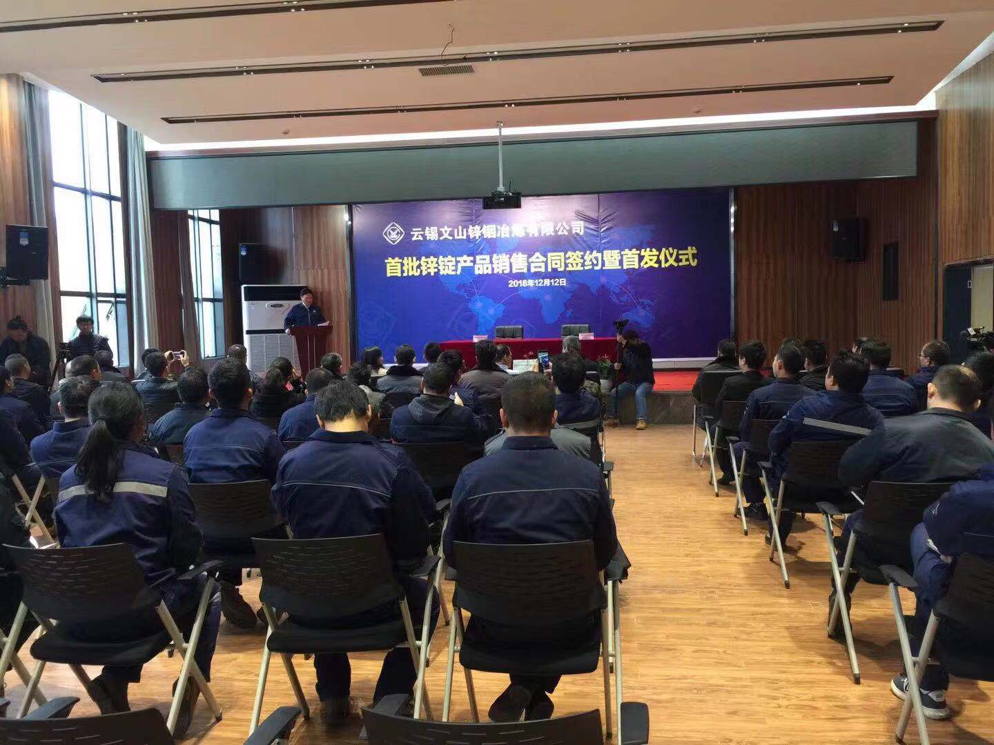 各簽約方在儀式上分別做了表態發言,并與文山鋅銦冶煉公司總經理朱北平簽訂首批鋅錠銷售合同。隨后,參加簽約儀式的嘉賓和領導對首批產品的首發進行了剪彩。