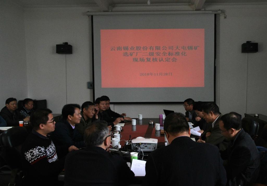 11月28日,云南省應急管理廳副處長李曉晨、丁武成,會同紅河州、個舊市安全生產監督管理局等領導專家對大屯錫礦選廠片二級安全標準化運行情況進行現場復核認定。