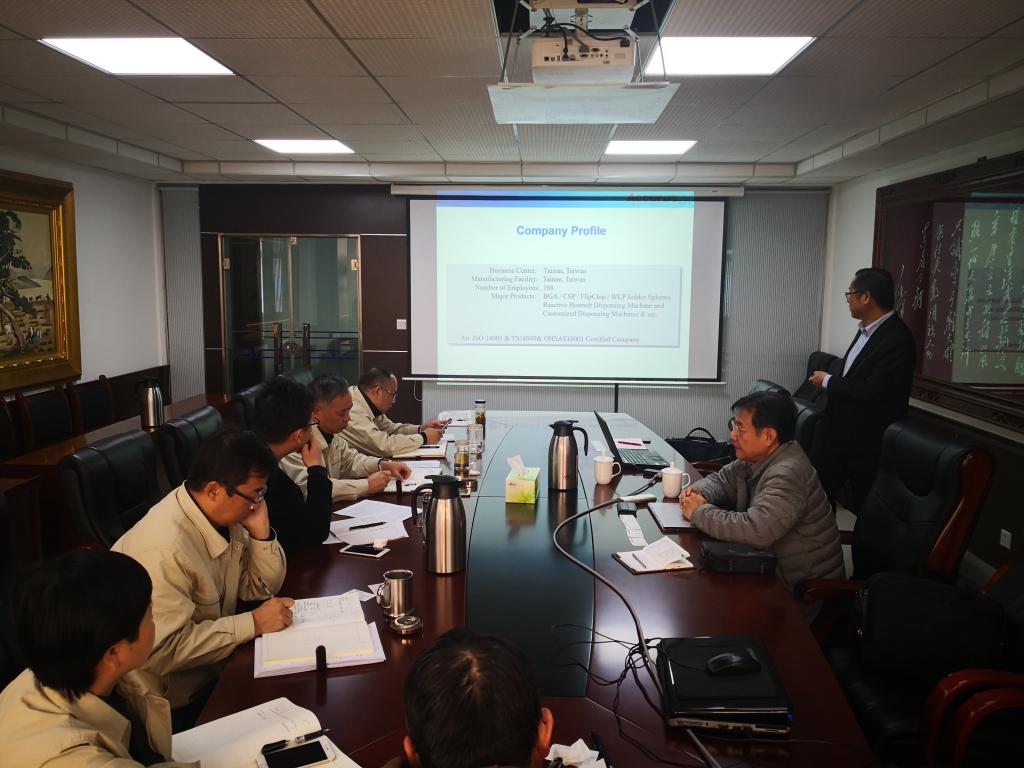 王重建介紹了恒碩公司的發展歷史,于1998年在臺灣注冊成立,專注于BGA焊錫球的技術、開發和生產經營,并擁有多項專利技術產品,希望雙方進一步加強交流與溝通,推動實質性的合作項目。