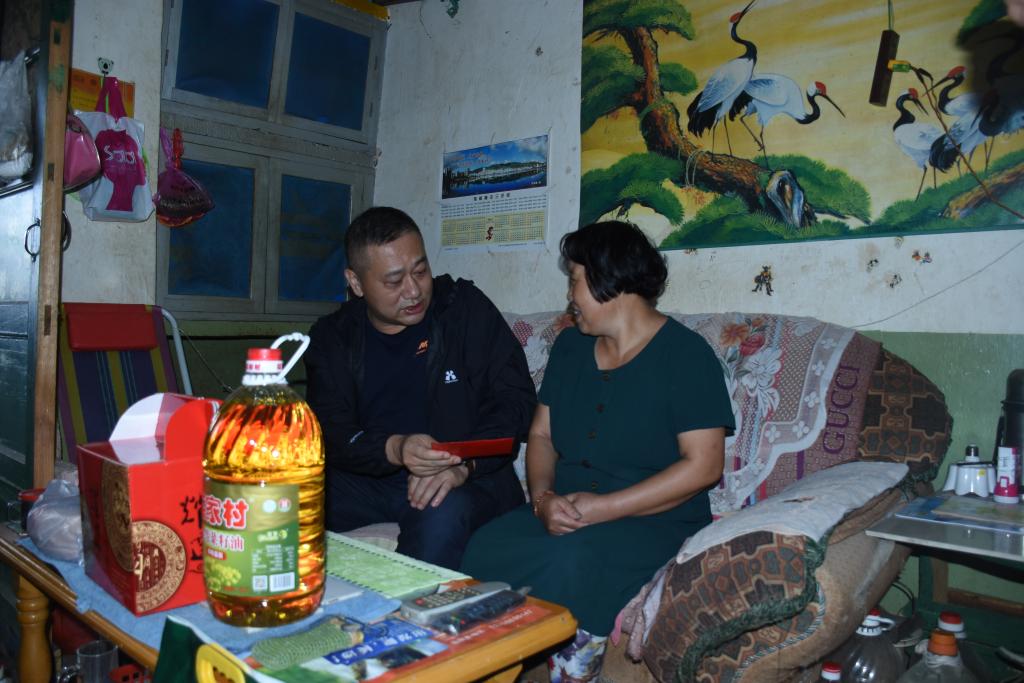 錫業(yè)股份黨委副書記、副董事長、總經(jīng)理楊奕敏走訪慰問卡房分公司困難職工楊元福、李嘎里。(陳 紅/攝)