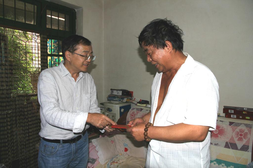 錫業(yè)股份黨委書記、董事長湯發(fā)走訪慰問老廠分公司困難職工楊德能、李金榮、繆章祿。(李拉發(fā)/攝)