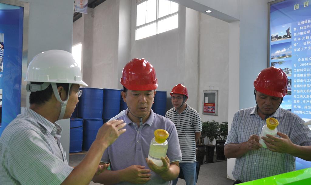9月6日,蒙自經濟技術開發區管委會黨工委書記張宏一行4人深入錫化工生產車間,調研生產經營、產品產量、市場銷售情況以及未來規劃和當前發展遇到的困難。