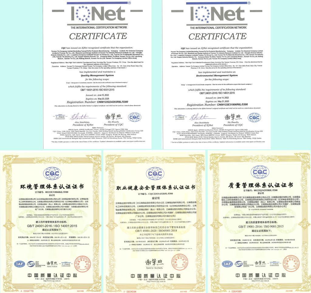 5月,CQC中國質量認證中心云南評審中心(中國檢驗認證集團云南有限公司)對錫業股份及相關單位進行了現場審核,錫業股份按時組織完成不符合項和改進項的整改,并配合提供認證上報資料,經CQC中國質量認證中心總部審核,確認上報資料符合要求,滿足發證條件,同意錫業股份保持原有認證產品及單位的基礎上,進一步將認證產品增加到32類,大屯、卡房、老廠、昆山系材等選礦、錫材深加工單位納入認證范圍,認證單位增加到11個。