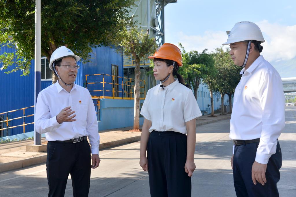 調研中,羅萍一行走進錫業分公司精煉車間錫錠自動化生產現場,詳細了解錫冶煉生產經營、安全環保、提能擴產、科技研發、能源供應等情況,并認真聽取云錫“精深加工延鏈、綠色智能補鏈、改革創新強鏈”發展理念及生產經營過程中面臨的困難問題,與企業共同商討解決對策。